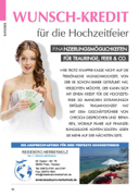 DER ER SCHON IMMER GETRÄUMT HAT, VERZICHTEN MÖCHTE, DER KANN SICH MIT EINEM KREDIT FÜR DIE HOCHZEITS- FEIER SO MANCHEN EXTRAWUNSCH ERFÜLLEN. TRAUMHOCHZEIT HAT MIT DEM GESCHÄFTSFÜHRER VON CHECK24 GESPROCHEN UND ERFAH- REN, WORAUF PAARE AUF FINANZIE- RUNGSSUCHE ACHTEN SOLLTEN. LESEN